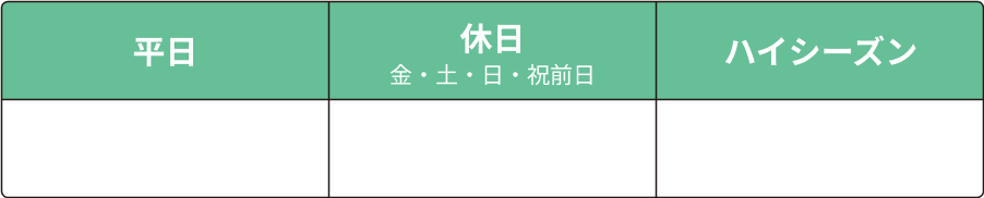 ※ハイシーズン:ゴールデンウィーク・7月~8月、年末年始
